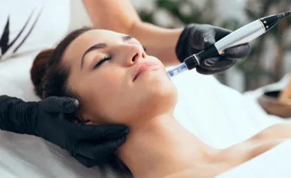 Hydrafacial is a non-invasive skincare treatment that combines cleansing, exfoliation, extraction, hydration, and antioxidant protection in one rejuvenating session. Using patented vortex suction technology and specialized serums, Hydrafacial deeply cleanses the skin, removes dead skin cells, extracts impurities, and replenishes hydration. This multi-step treatment is suitable for all skin types and addresses a variety of concerns, including fine lines, wrinkles, hyperpigmentation, and congested pores. Hydrafacial leaves the skin radiant, refreshed, and revitalized, with no downtime or discomfort.